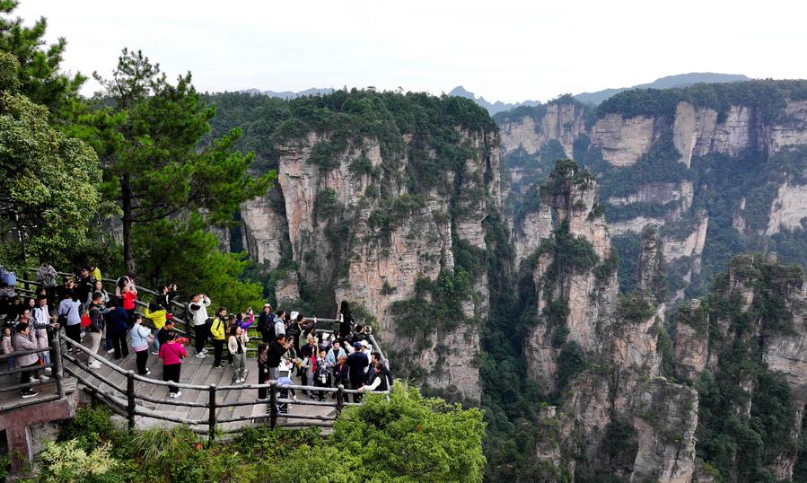 Tourists visit Zhangjiajie National Forest Park in central China's Hunan Province, Oct. 3, 2024. (Photo by Wu Yongbing/Xinhua)