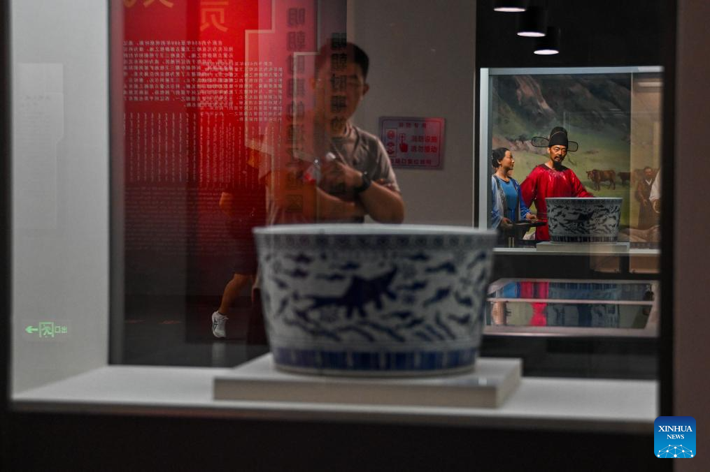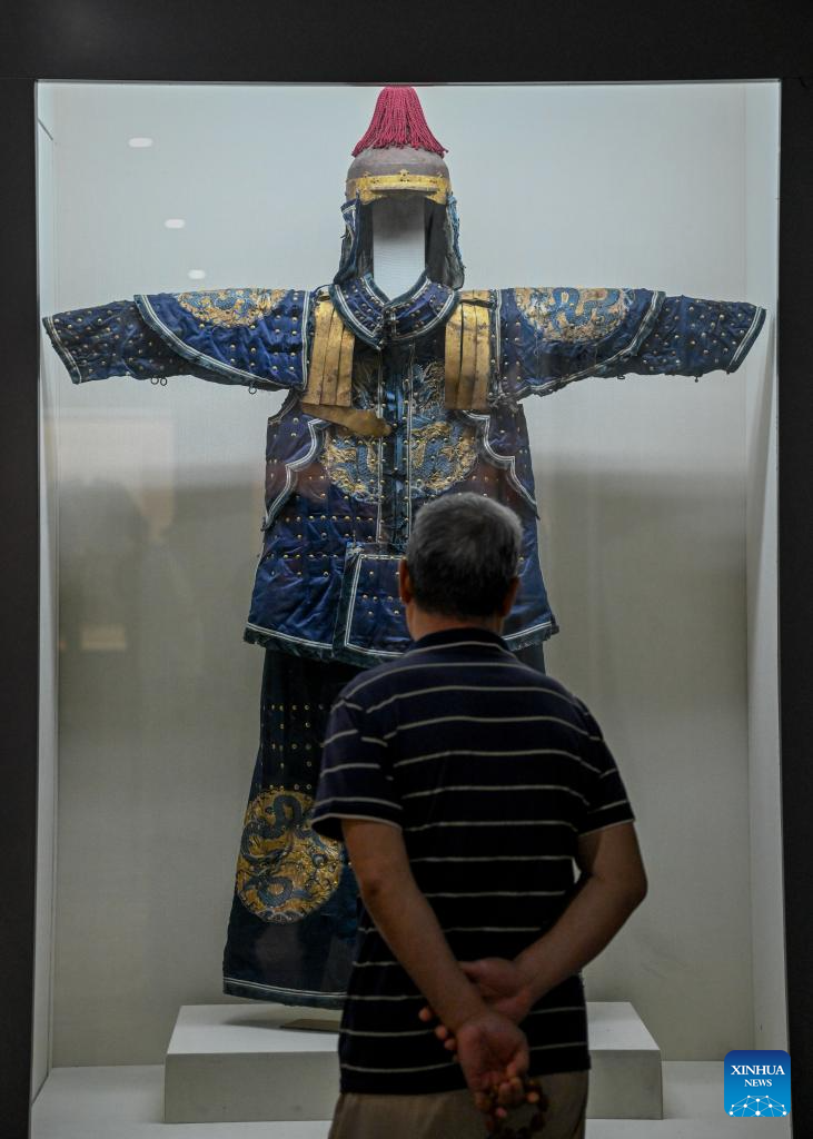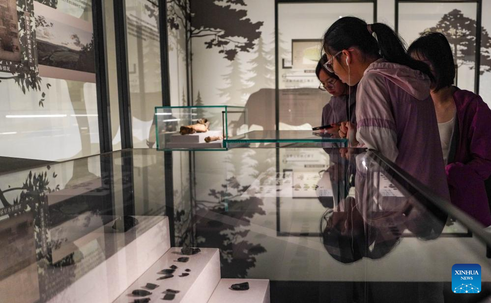 A man watches an exhibit at the Tongliao Museum in Tongliao, north China's Inner Mongolia Autonomous Region, Aug. 10, 2025. During the summer vacation, cultural sites and museums have become popular destinations for people in northeast China's Heilongjiang, Jilin, Liaoning provinces and north China's Inner Mongolia Autonomous Region. (Xinhua/Lian Zhen)
