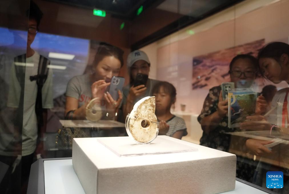 People take photos of an exhibit at the Liaoning Provincial Museum in Shenyang, northeast China's Liaoning Province, Aug. 12, 2025. During the summer vacation, cultural sites and museums have become popular destinations for people in northeast China's Heilongjiang, Jilin, Liaoning provinces and north China's Inner Mongolia Autonomous Region. (Xinhua/Pan Yulong)