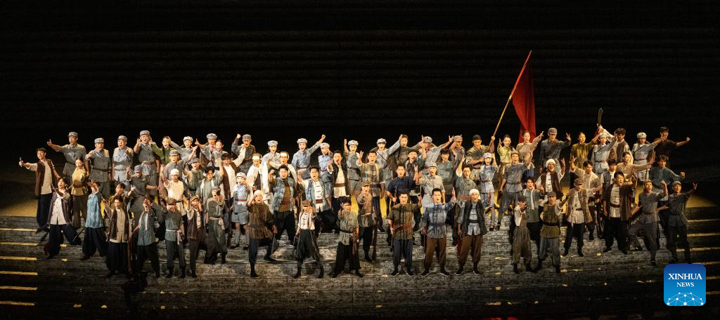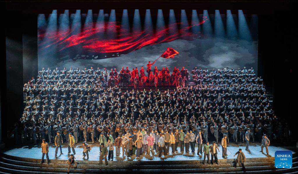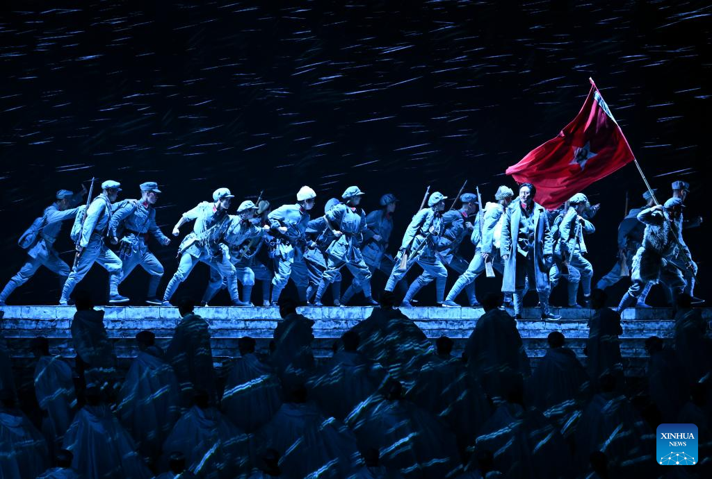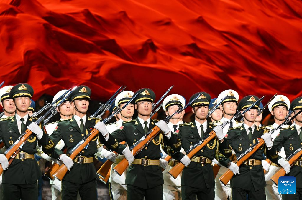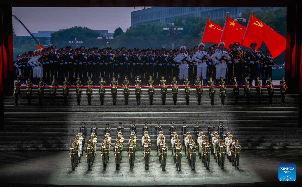 A grand cultural gala with the theme of "Justice Prevails" is staged to commemorate the 80th anniversary of the victory of the Chinese People's War of Resistance against Japanese Aggression and the World Anti-Fascist War at the Great Hall of the People in Beijing, capital of China, Sept. 3, 2025. (Xinhua/Zhai Jianlan)