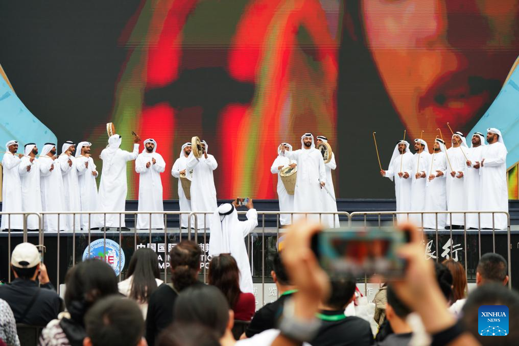 Performers from the United Arab Emirates perform during the eighth China International Import Expo (CIIE) in east China's Shanghai, Nov. 8, 2025. The CIIE is not only a global platform for the trade of goods and services but also a grand event for the exchange of cultures and ideas between China and the world. (Xinhua/Fan Yuqing)