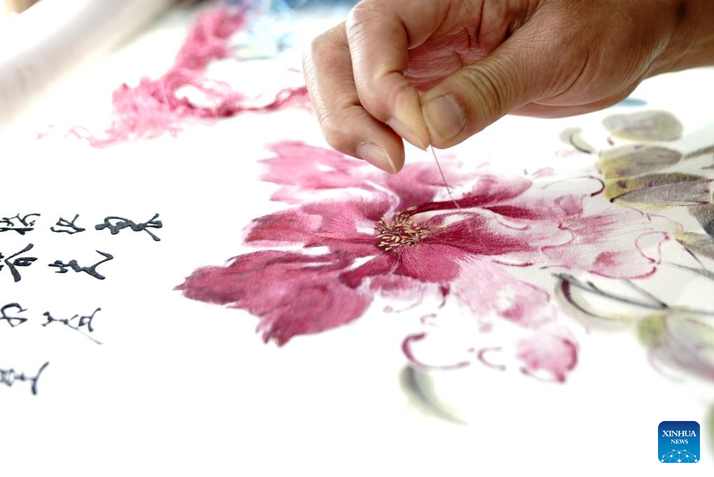 A staff member demonstrates embroidery at the booth of China's Henan Province during the eighth China International Import Expo (CIIE) in east China's Shanghai, Nov. 7, 2025. The CIIE is not only a global platform for the trade of goods and services but also a grand event for the exchange of cultures and ideas between China and the world. (Xinhua/Zhang Jiansong)