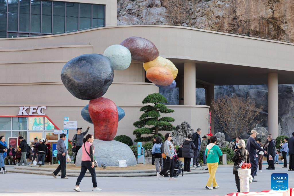 This photo taken on Nov. 6, 2025 shows shops at the Yundu service area of the Huajiang Grand Canyon Bridge in southwest China's Guizhou Province. The Huajiang Grand Canyon Bridge, soaring 625 meters above the Beipan River in Guizhou's mountainous terrain, is the world's highest bridge. The nearby Yundu service area features a comprehensive complex that integrates bridge viewing, sports experiences and other tourism services. (Xinhua/Ou Dongqu)