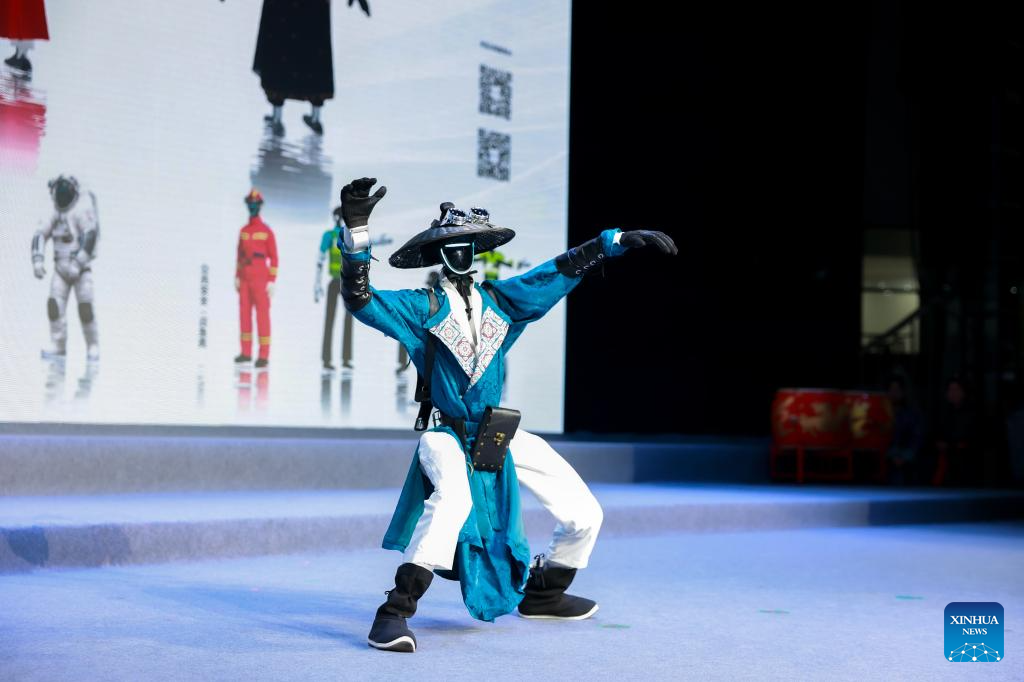 JINAN, April 17 (Xinhua) -- Forget a conventional Hanfu launch. At a brand show in Caoxian County, east China's Shandong Province, models took the stage holding pint-sized dolls dressed in matching traditional attire, while humanoid robots also appeared in Hanfu, catching much of the audience's attention.