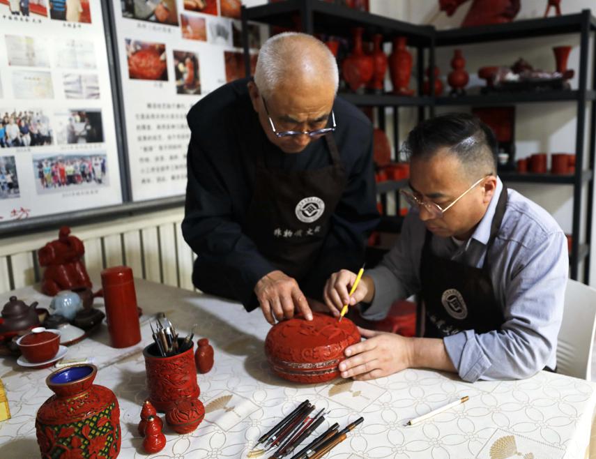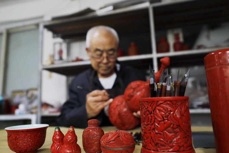 Zhu Qingyuan, a master artisan of carved lacquerware in Nansong village of Gu'an county, Langfang, Hebei province, has given all his energy to the inheritance and preservation of his craft over the past several decades. The 78-year-old continues to instruct his apprentices at his workshop how to paint, carve and polish."The process of making carved lacquerware pieces is very complicated. It needs to go through dozens of procedures," Zhu said, adding that making a piece takes from about half a year to three years.Because the whole process is done by hand, the production of carved lacquer is time-consuming, he said.