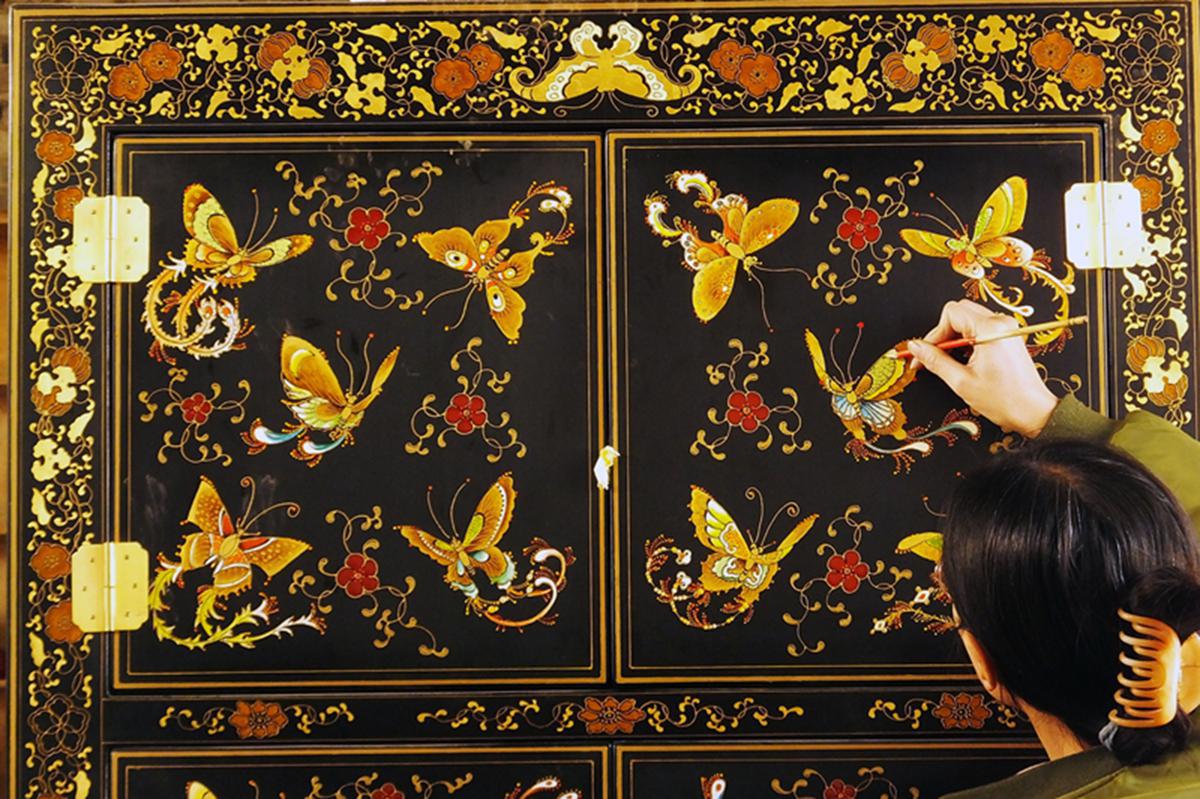 Dozens of folk craftsmen in Yiquan village in Xinjiang county of Yuncheng, Shanxi province, were busy creating gold-paste artwork recently.