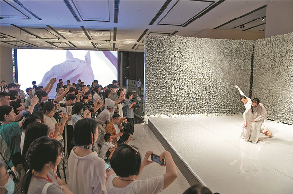 Dancers perform in Box of Life, one of Zhu's installations, at the exhibition opening. [Photo provided to China Daily]