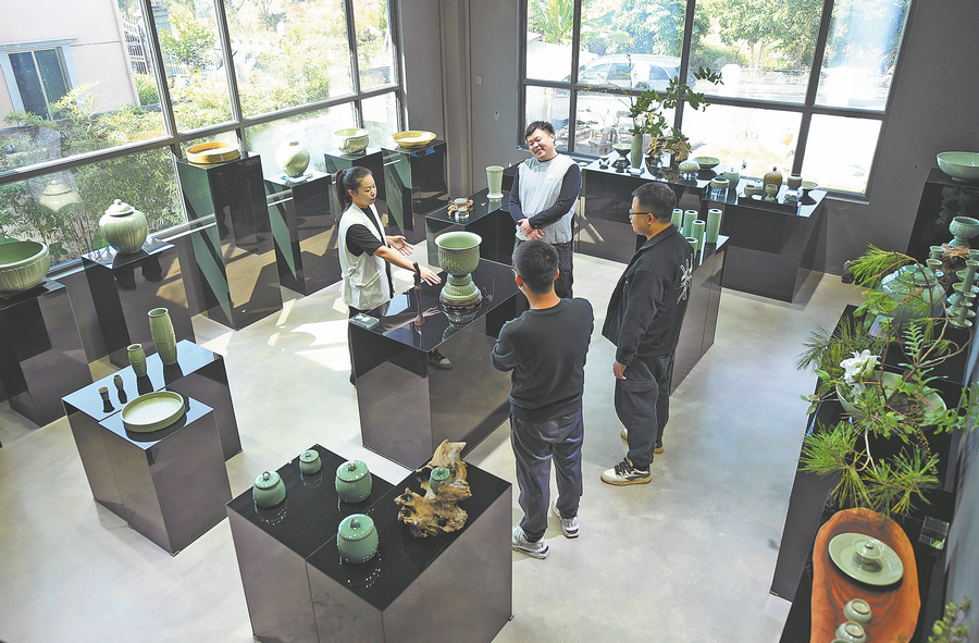 Inspired by the celadon ware of the Northern Song Dynasty (960-1127), the couple show their celadon bowls and the style that became popular during the dynasty.WENG XINYANG/XINHUA