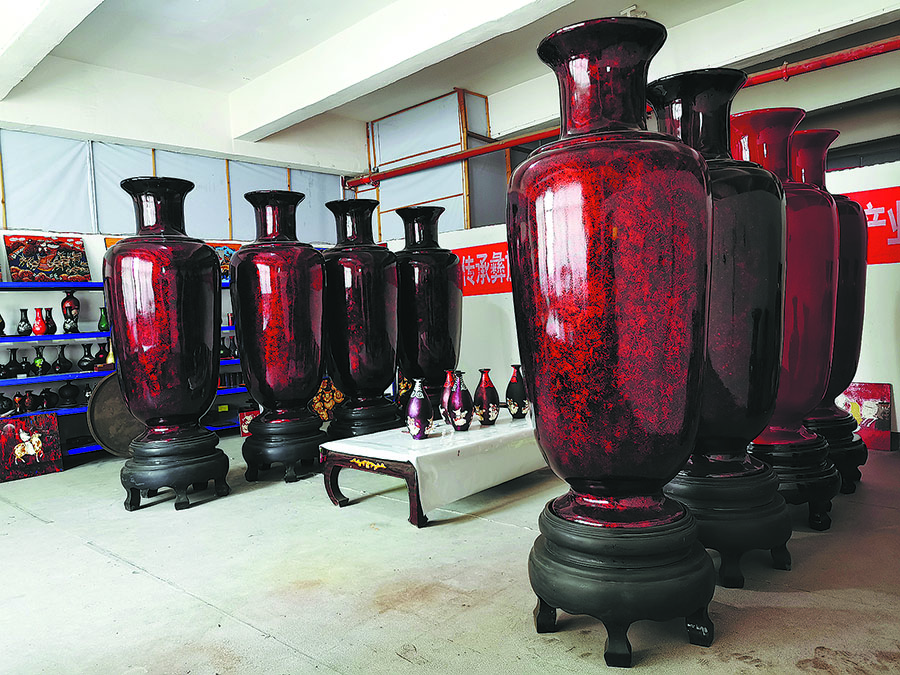Large lacquered vases are among the highlights at Gao's workshop. [PHOTO BY PENG YOULIN/CHINA DAILY]