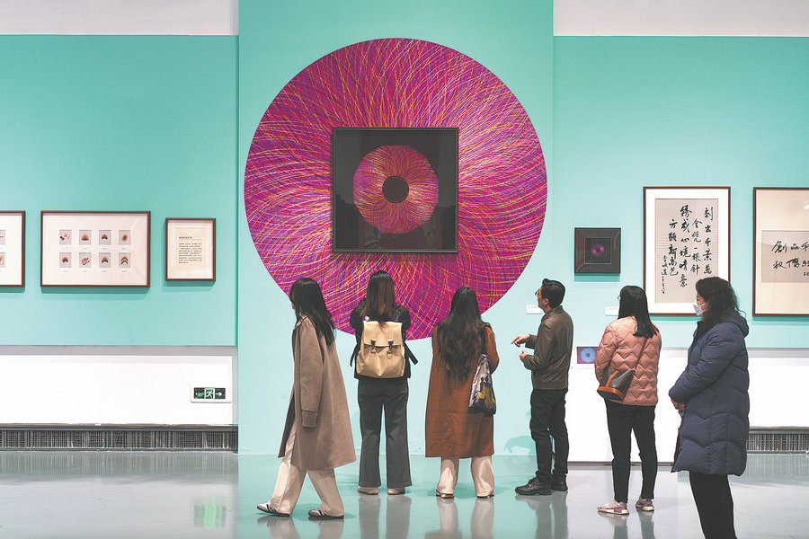 Walking into the Suzhou Art Museum in Suzhou, Jiangsu province, the eyes of visitors are immediately drawn to an artwork hanging high on the wall that depicts the collision of gold nuclei, giving the surface impression of a contemporary art piece.