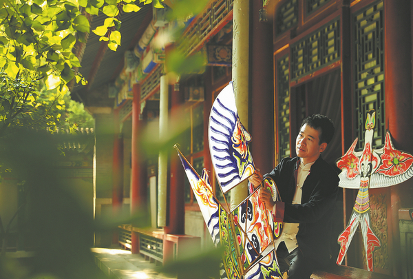 Miao Bogang, 43, is a representative inheritor of "Cao's kites" in Beijing. CHINA DAILY