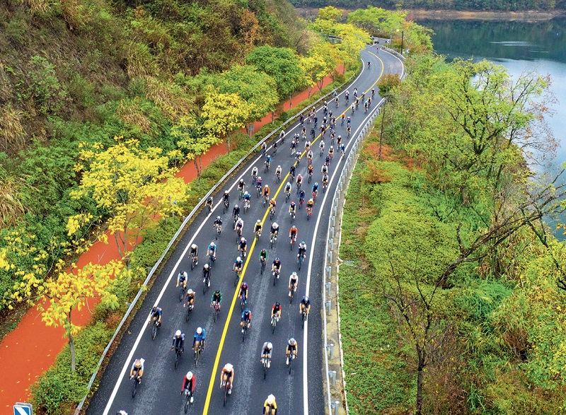 Countless cyclists enjoy the picturesque ride during the 16th Qiandao Lake Road Cycling Race held on November 20, 2022.