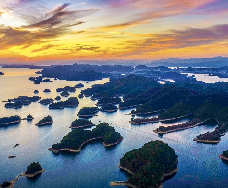 The Qiandao Lake is formed after the completion of the Xin’an River hydroelectric power station, which was the first large hydroelectric power station designed, equipped, and built by China independently.