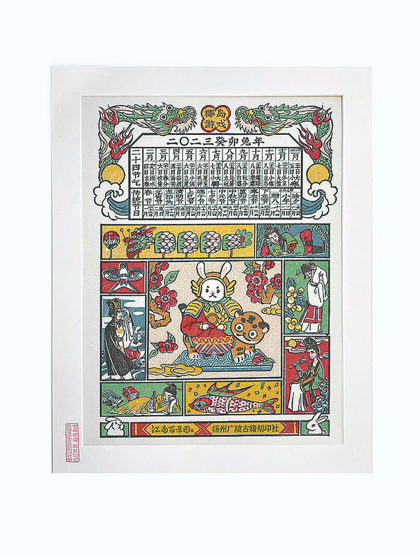 Apart from the Canal Towns single-page calendar, they also produce Yutu Xianhua Tu, a New Year painting created for the Year of the Rabbit, inspired by the pattern on apparel kept in the Palace Museum in Beijing. The production capacity is about 200 copies a month.