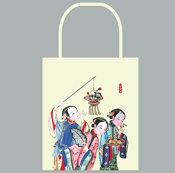 A bag designed by Yinqintang Woodblock New Year Painting Art Gallery.