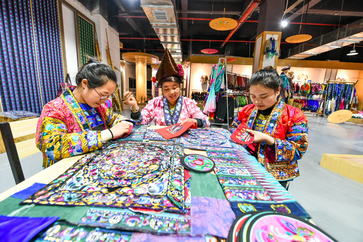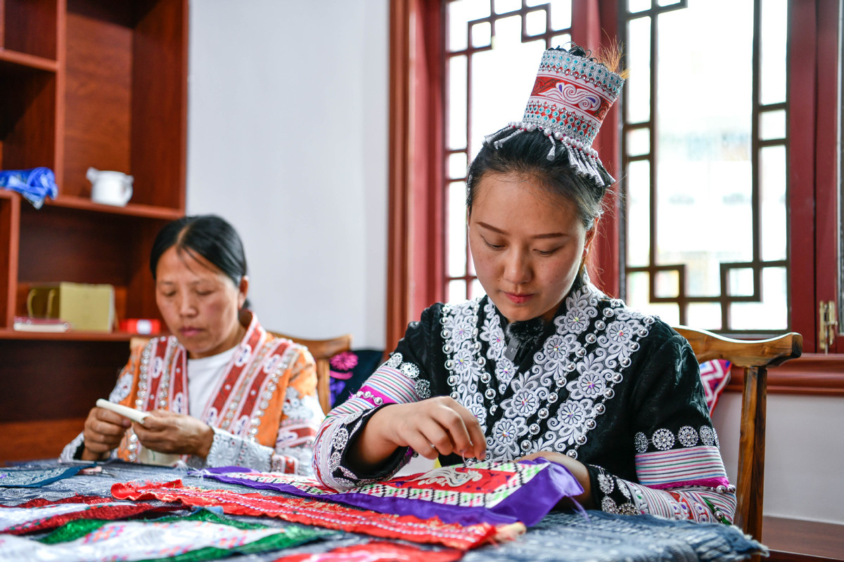 The Miao embroidery industry has become a major distinctive industry in Taijiang county.[Photo/Xinhua]