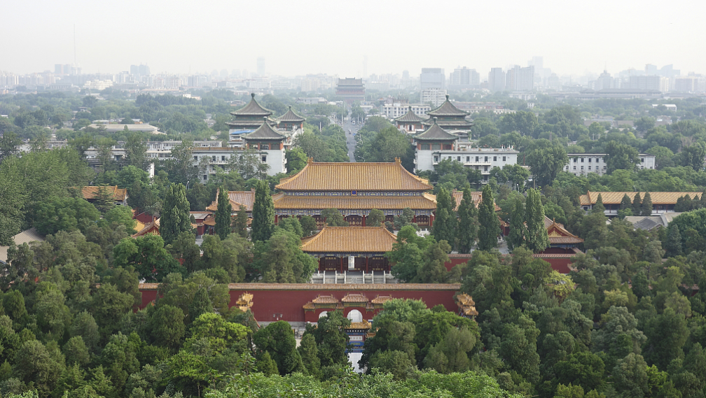 A view of the central axis from Jingshan Mountain in Beijing.