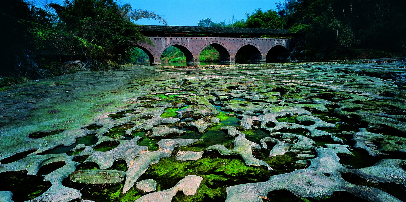 Wuxing Bridge was built during the reign of Emperor Daoguang (1822) of the Qing Dynasty. This five-span covered bridge with a stone arch is 60 meters long, 6 meters wide and 5 meters high. It is the only covered bridge in China that connects two cities ---- the south end of the bride is in Chongqing administrative region while the north end stands in Sichuan Province.