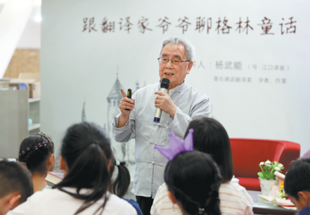 Translator Yang Wuneng talks to young readers about Grimm's Fairy Tales at an activity organized by Chongqing Library. XINHUA