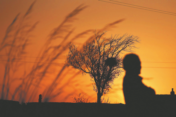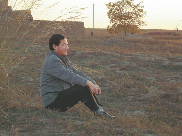 Zhang Lian in his native home in Yanchi, in Northwest China's Ningxia Hui autonomous region, at sunset. KUANG LINHUA/CHINA DAILY