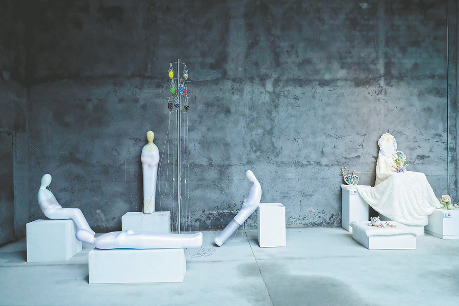 Some of the works on display, by graduates from the School of Sculpture and Public Art. CHINA DAILY