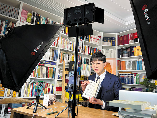 Zhao Jian is an online celebrity, and his short videos cover topics such as books, the story of a bookstore owner and talks with authors.[Photo provided to China Daily]