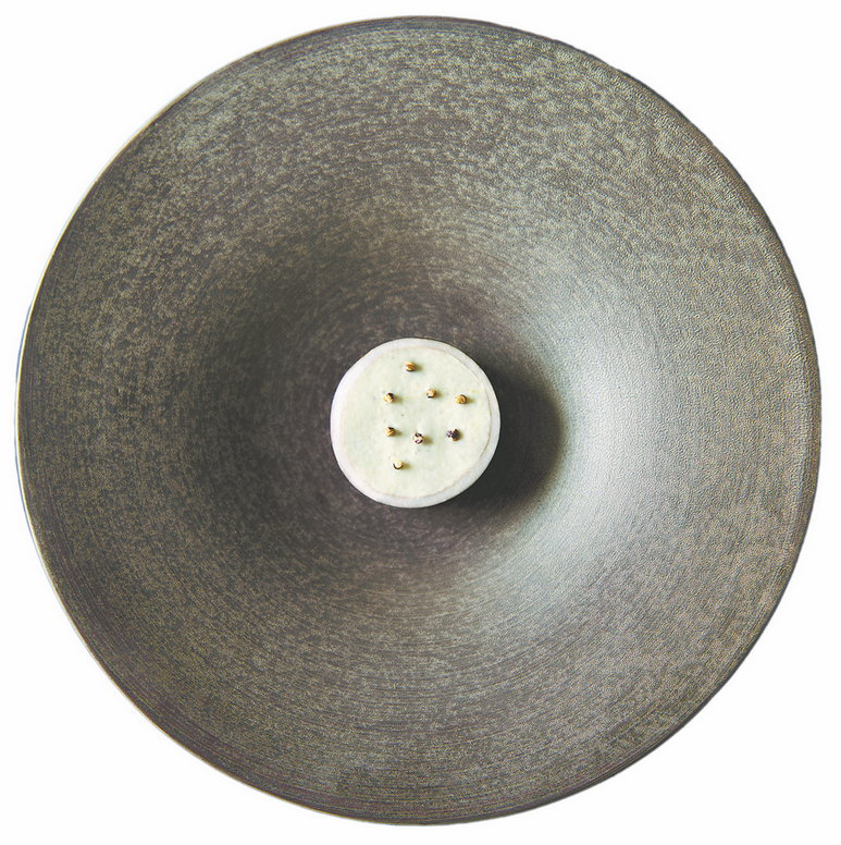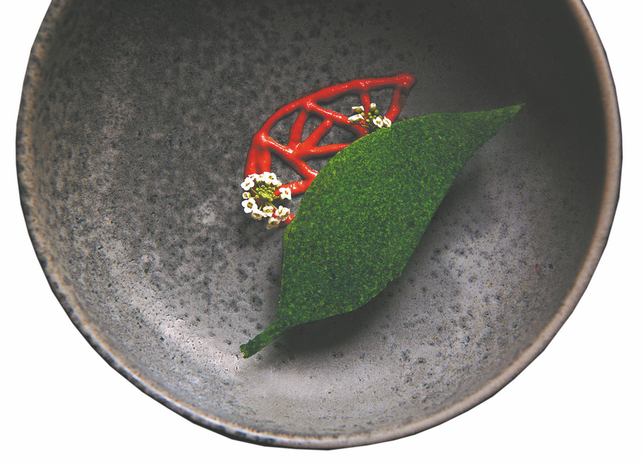 Jerusalem artichoke mousse with edible moss crisps, sun-dried tomatoes and glasswort flowers. CHINA DAILY