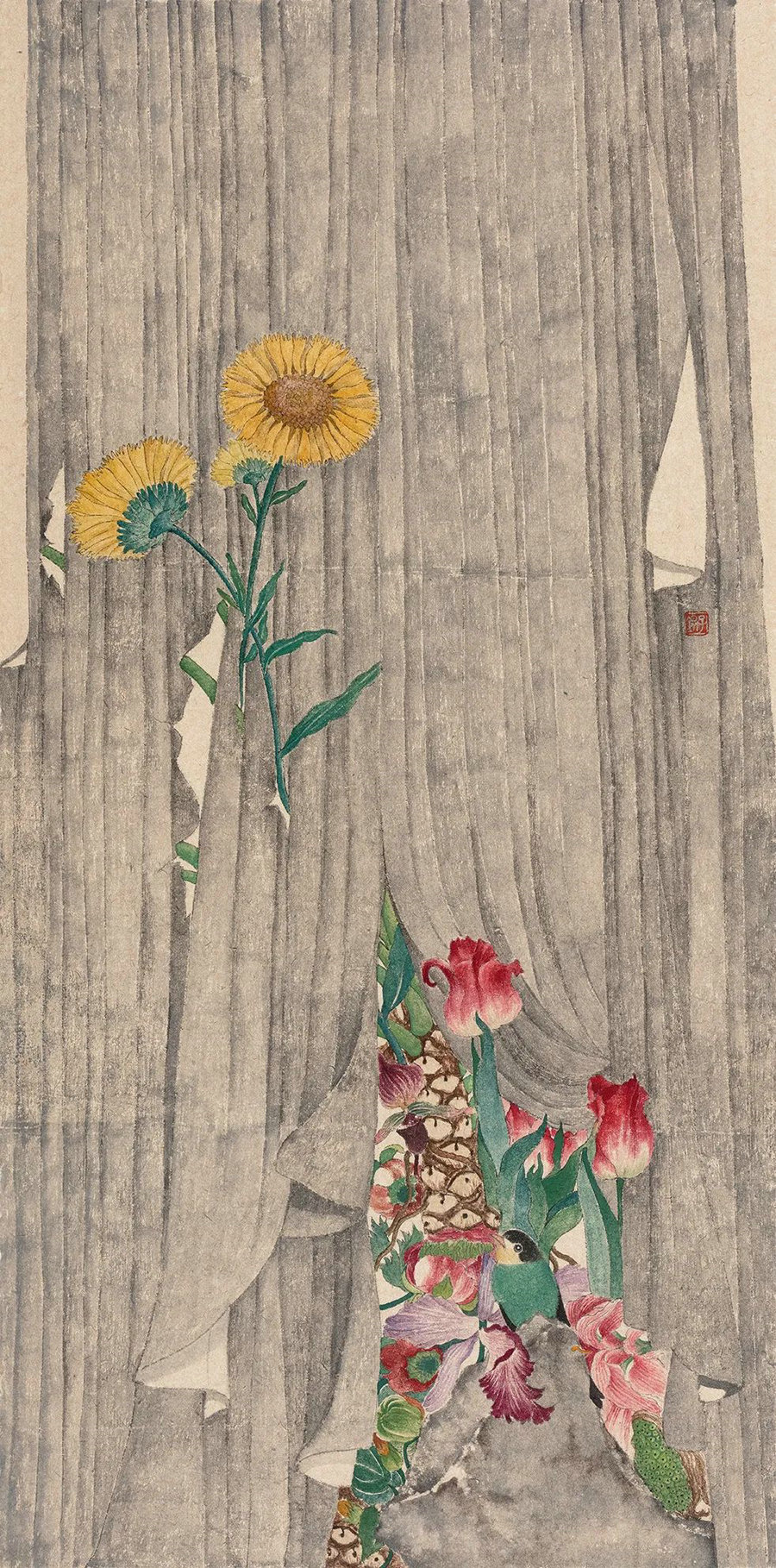 Under ink artist Wang Zikun's delicate strokes, she has vividly visualized this little universe of variety and dynamics with an elegant palette. She has employed those motifs in ancient Chinese paintings and rearranged them in a different composition to deliver a sense of modernity and serenity.