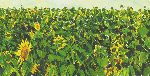 In his painted works, sunflowers rarely appear individually and in isolation; instead, he has invariably restored sunflowers to the environment in which the plants grow, usually vast stretches of fields.