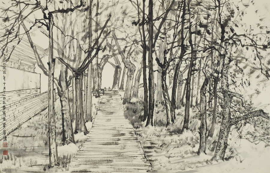 The 120-odd paintings on show were made by artists from across the country who visited and sketched those landmark sites along the route, such as the Palace Museum and Yongding Gate.