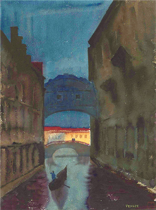 Renowned architect Tong Jun's works, on exhibition, include A Night View of Bridge of Sighs, Venice. [Photo provided to China Daily]