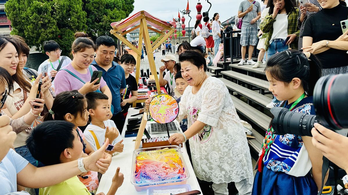 Zhang Shuangmin might look a bit haphazard as she drips pigment onto a square container of water. The pigments immediately disperse into small circles once they touch the surface of the transparent liquid, and without wasting any time, Zhang swirls them with an awl in seemingly casual movements.