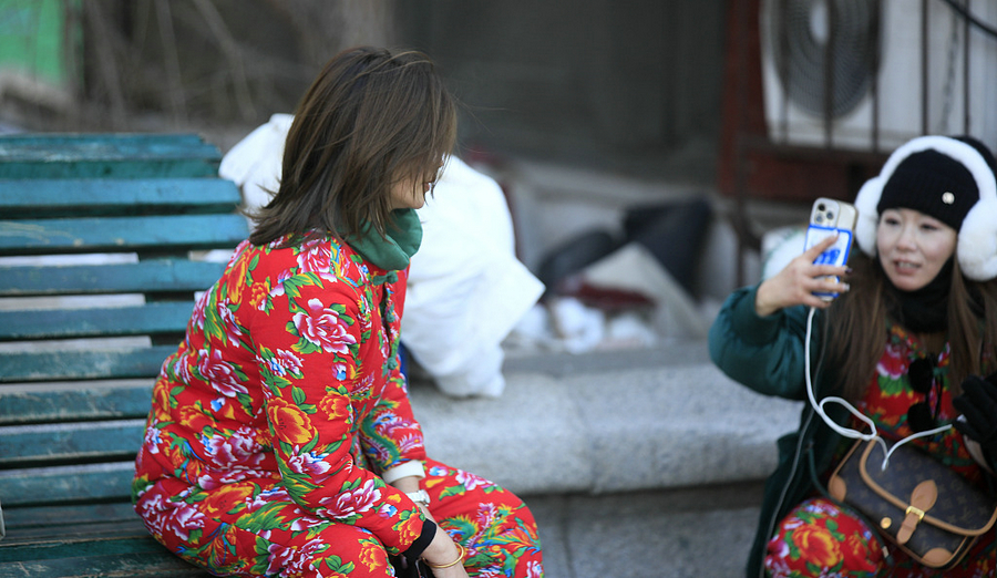 Amid booming tourism, traditional flower patterns with red-and-green peony elements have become a hot trend in Harbin, northeast China. As a way to engage the local culture, visitors are seen dressed in cotton-padded and down-padded jackets featuring the colorful patterns.