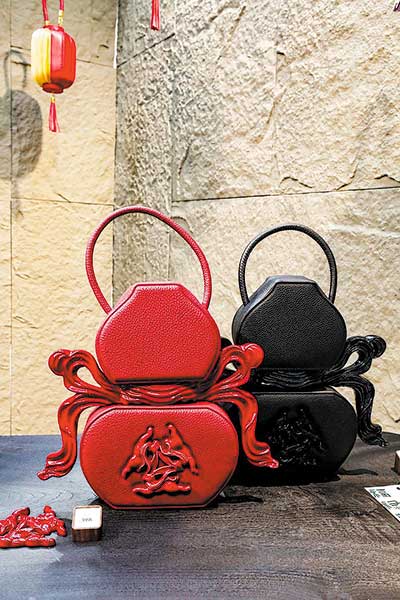 Handbags by Xiangshang on display at Shanghai Fashion Week.[Photo provided to China Daily]