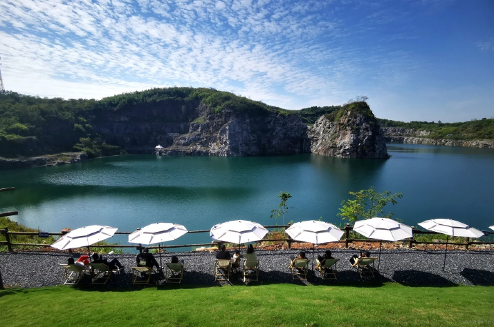 Quarrying used to be a major industry in Hongmiao. To make use of the discarded mining pit, the villagers' committee chose to collaborate with a group of creative college students, establishing a travel company and opening Deep Blue last year.