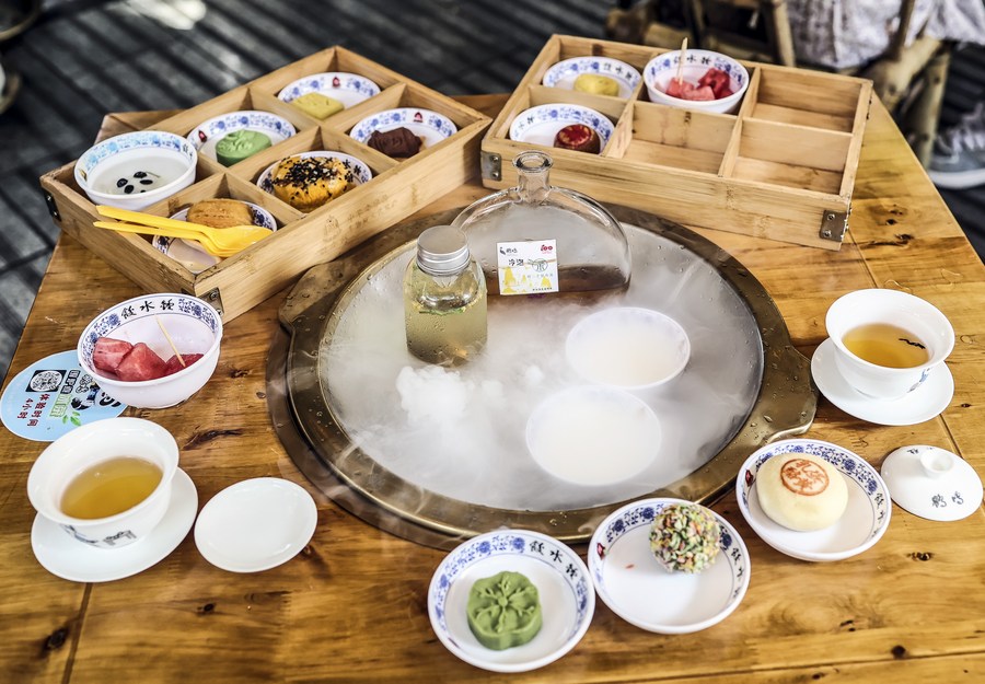 A set meal for tea tasting is served at Heming tea house in Chengdu, southwest China's Sichuan Province, July 31, 2023. (Xinhua/Lan Hongguang)