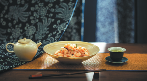 The story of this dish relates to the Emperor Qianlong of Qing Dynasty (1644-1911). On an excursion to Hangzhou, one of the emperor's chefs accidentally dropped Longjing tea leaves into the sauteed shrimp. The lingering fragrance of the tea combined with the divine texture of the shrimp won the emperor over and a classic Hangzhou dish was born.