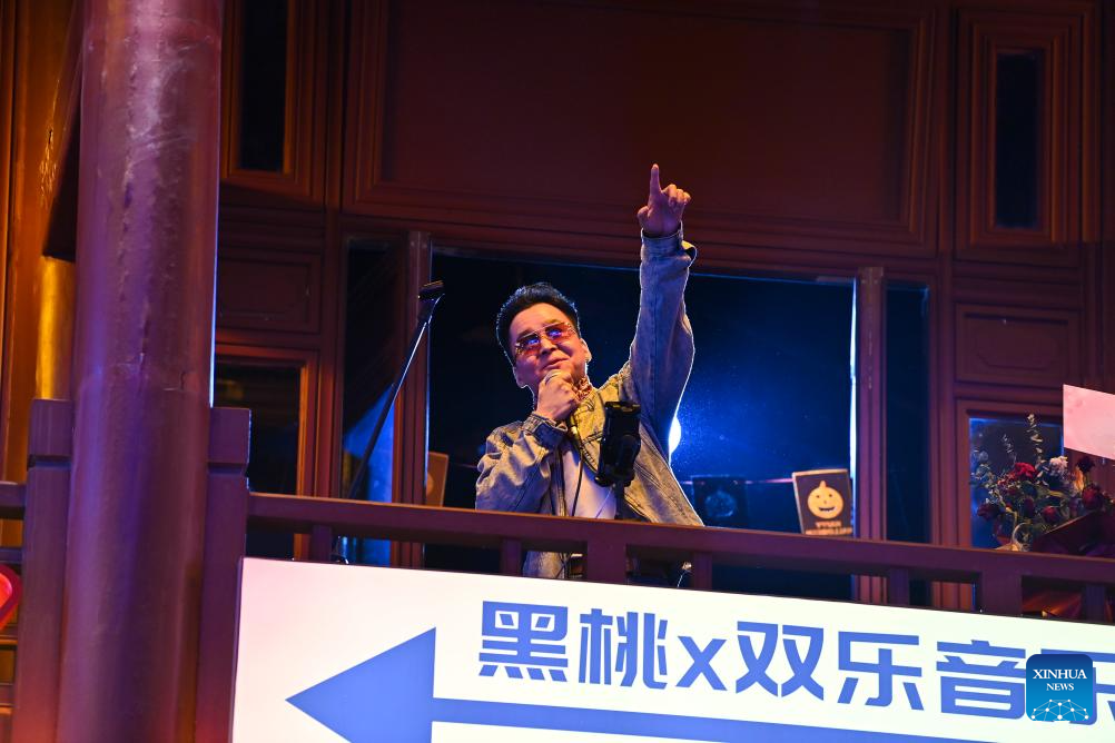 A singer performs at Zhonglou Street in Taiyuan, north China's Shanxi Province, Oct. 29, 2025. As both a commercial hub and cultural landmark of Taiyuan, Zhonglou Street carries a millennium of local history. However, rapid urban development once left it struggling with aging facilities, narrow spaces, and traffic congestion.