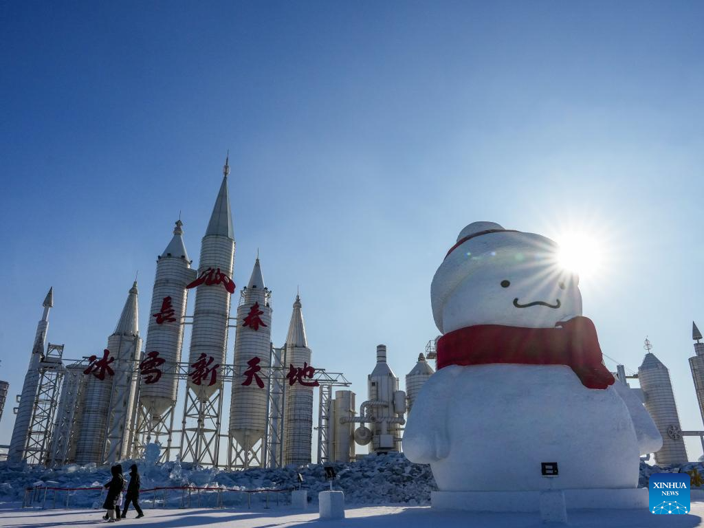 Tourists visit a park in Changchun, northeast China's Jilin Province, Jan. 5, 2026. Changchun has set up a variety of distinctive ice and snow landscapes throughout urban areas this winter to lure tourists and encourage consumption. (Xinhua/Xu Chang)
