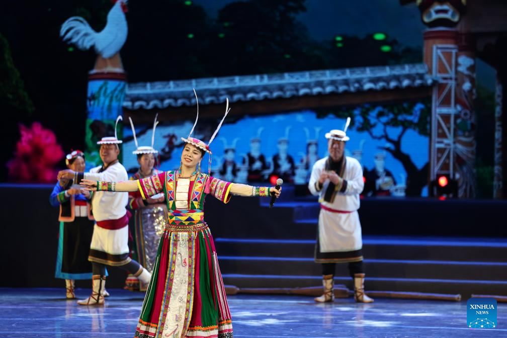 Actors from the cultural center of Gansu's Yongchang County perform during the first show of a mass cultural performance and broadcasting event held at the Lanzhou Concert Hall in Lanzhou, northwest China's Gansu Province, on Jan. 7, 2026. The mass cultural performance and broadcasting event, which plans to organize 240 mass cultural shows throughout the year, aims to build cultural and artistic stages for the general public at their doorsteps. (Xinhua/Chen Bin)