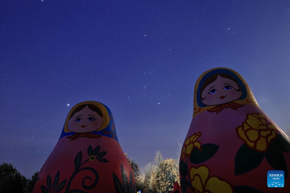 ▲This stack composite photo taken on Jan. 24, 2026 shows a view of the starry sky in Qiqihar City, northeast China's Heilongjiang Province. China's northernmost Heilongjiang Province has entered the golden period for winter starry sky observation. With auroras occasionally making an appearance, the brilliant starry sky and the icy landscape together unfold a serene and breathtaking picture. (Photo by Wang Yonggang/Xinhua)