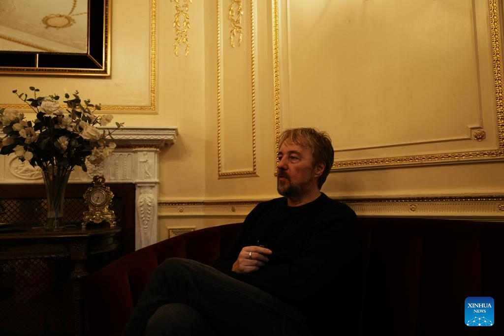 ▲British musical actor John Owen-Jones receives an interview at His Majesty's Theatre in central London, Britain, Dec. 22, 2025. (Xinhua/Zhao Jiasong)